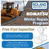 Ashley I / Wednesday, November 12, 2025 / Categories: Deals and Promotions Komatsu Winter Repair Program Free 51pt InspectionRepairs could be eligible for a 10-15% parts discount and 5% labor discount.Repairs will be eligible for the current Komatsu Parts and Service finance program with credit approval. (Expires 12/31/25)Call your PSSR for more details! Wirtgen Winter Repair Program Black Friday Komatsu Sale Print 1